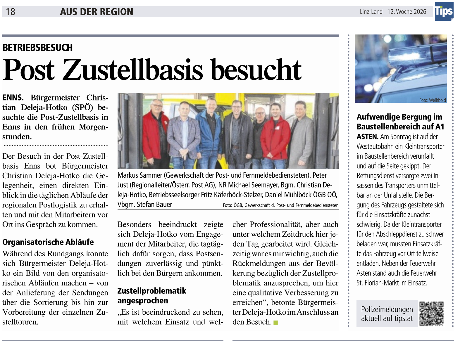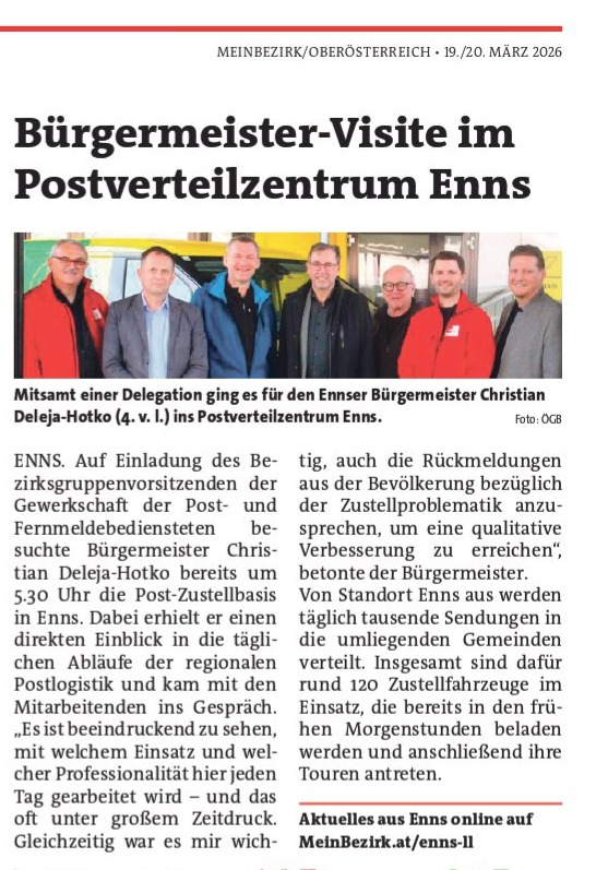 - Besuch der Personalvertretung OÖ. in der Zustellbasis 4470 Enns (Seite 14) ......
